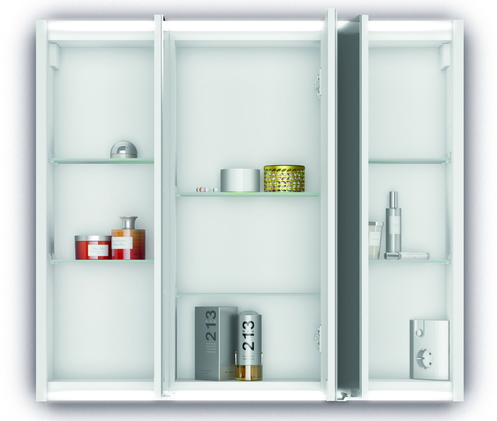 Der Zurbrüggen Spiegelschrank BATU vereint modernes Design mit praktischer Funktionalität. In strahlendem Weiß gehalten, fügt sich der Spiegelschrank harmonisch in jedes Badezimmer ein. Der Korpus besteht aus hochwertigem Melamin, das für Langlebigkeit und pflegeleichte Eigenschaften sorgt. Mit seinen drei Türen bietet der Schrank ausreichend Stauraum für Ihre täglichen Pflegeprodukte und sorgt für Ordnung. Die integrierte LED-Beleuchtung mit einer Nennleistung von 14 W garantiert eine optimale Ausleuchtung, während die Energieeffizienzklasse A für einen geringen Energieverbrauch steht. Die enthaltenen LED-Leuchtmittel sind zudem auswechselbar, sodass Sie lange Freude an Ihrem Spiegelschrank haben.