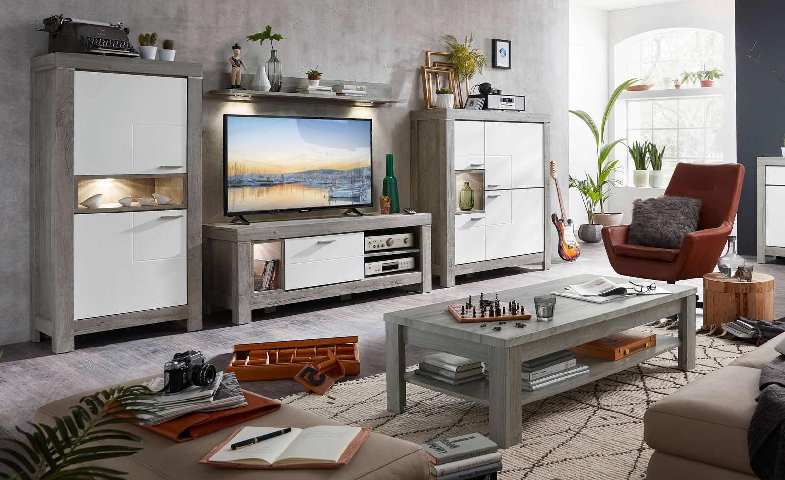Auf die gleichnamige Möbelserie abgestimmt, bietet das weiße ZURBRÜGGEN Stauraumelement "GRANADA" ein stimmungsvolles Erscheinungsbild zu jedem Farbklima. Sein geradliniger Korpus zeigt ein markantes Haveleiche-Dekor, welches von supermattweißen Lackabsetzungen des Frontbereichs elegant begleitet wird.