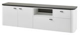Zurbrüggen TV-Unterteil WAVE - Beleuchtung inklusive Verleihen Sie Ihrem Wohnzimmer mit dem Zurbrüggen TV-Unterteil WAVE einen Hauch von Luxus. Die eingebaute LED-Beleuchtung sorgt für stimmungsvolle Akzente und hebt das moderne Design besonders hervor. Die zwei Drehtüren und Schubladen bieten nicht nur praktischen Stauraum, sondern auch eine elegante Lösung zur Organisation Ihrer Technik und Accessoires. Genießen Sie die nahtlose Kombination aus Form und Funktion, die jeden Raum aufwertet. Lassen Sie sich von diesem einzigartigen Möbelstück inspirieren und bestellen Sie es noch heute für Ihr Zuhause.
