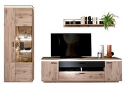 Die Wohnkombination MODENA kann sich in nahezu jedem Wohnzimmer sehen lassen. Ihr persönliches Einrichtungskonzept wird dank des natürlichen Designs ergänzt. Die Wohnkombination hat eine Breite von insgesamt 295 Zentimetern, eine Höhe von 208 Zentimetern sowie eine Tiefe von 50 Zentimetern. Sie ist mit ihren zwei Schubkästen genau das richtige Möbelstück für alle Ordnungsliebhaber und weist vier Drehtüren auf, hinter denen sich Ihnen Stauraum zum Unterbringen Ihres Hab und Guts bietet. Als integriertes Extra rundet eine Beleuchtung das Modell MODENA ab. In dieser Wohnwand sind sämtliche Qualitäten und Highlights der Marke Zurbrüggen kombiniert. Holz-Nachbildung kommt bei der Herstellung zum Einsatz. Diese Wohnwand verleiht jedem Zuhause eine freundliche Atmosphäre.
